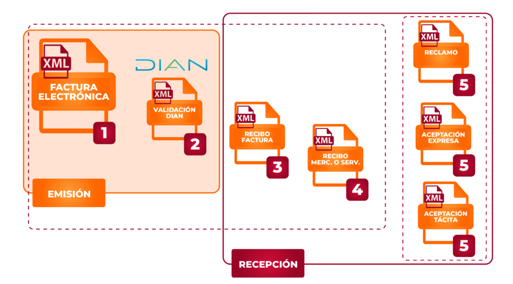 RECIBO. Informa el recibo de la mercancía o la aceptación de la prestación del servicio emitida por el Adquiriente / Deudor / Aceptante.
